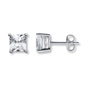 Sapphires Square-cut Sterling Silver Earrings