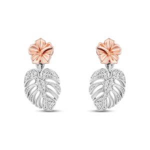 Diamond Palm Leaf Earrings 1/10 ct tw Sterling Silver & 10K Rose Gold