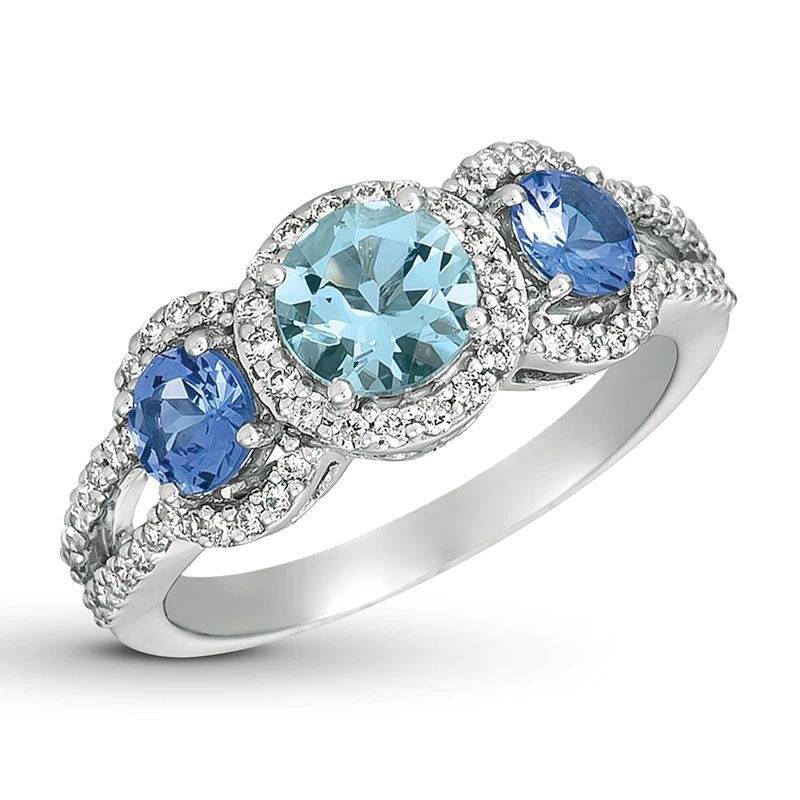 Garnet and Blue Sapphire Symbol Ring in Sterling Silver and 10K Gold :Garnet and Blue Sapphire Symbol Ring in Sterling Silver and 10K Gold