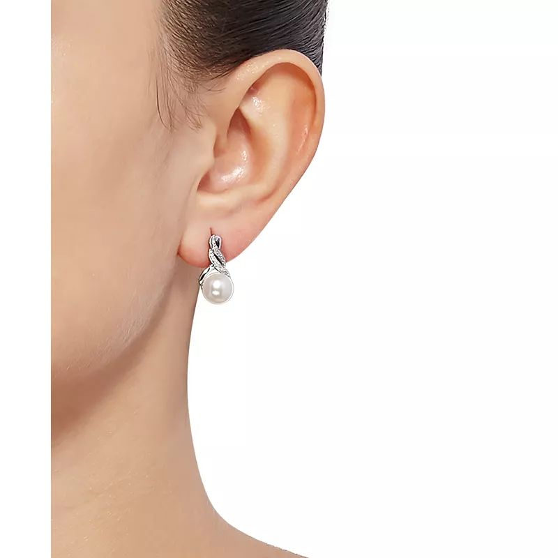 A diamond accented swirl adds a hint of glamour to this stunning cultured freshwater pearl (8 & 9mm) pendant necklace and matching stud earrings.